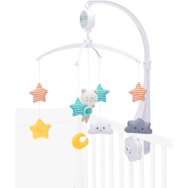 eine kleine mechanische Spieluhr angetrieben werden. Das Musik-Mobile hat ein